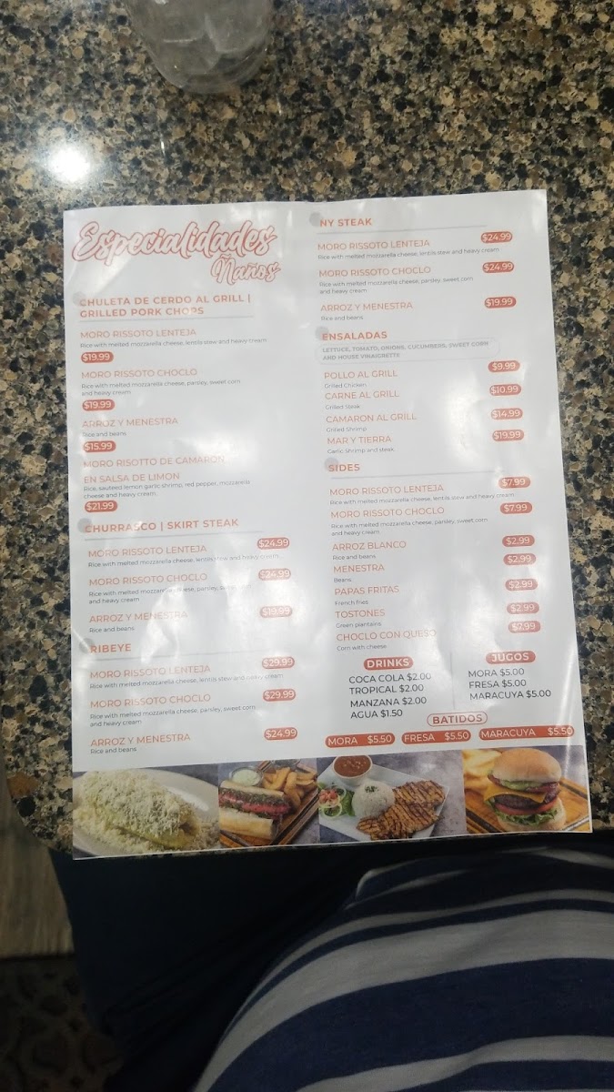 Guests can enjoy traditional dishes like Encebollado De Pescado, a warm and satisfying fish soup perfect for a midday meal, or savor the rich layers of Churrasco con Risotto de Lenteja during a leisurely evening gathering. The grilled offerings, available after 1 PM, add a smoky depth to the menu, complementing options such as Patacones con Queso and Ceviche de Pescado that bring fresh, bright flavors ideal for a casual bite or appetizer.